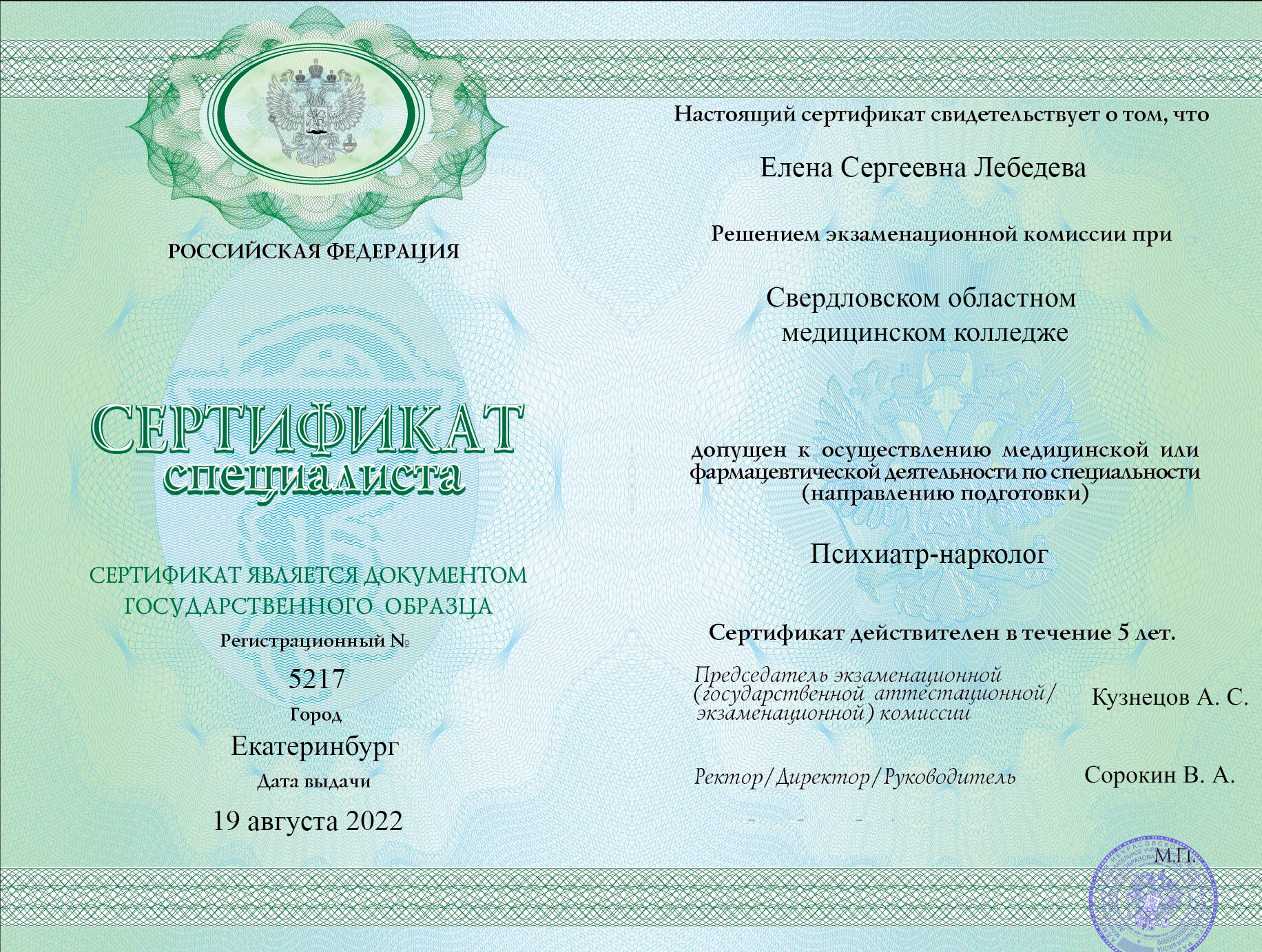 Елена Сергеевна Лебедева врач нарколог клиники доктора Стукаловой в Никольске